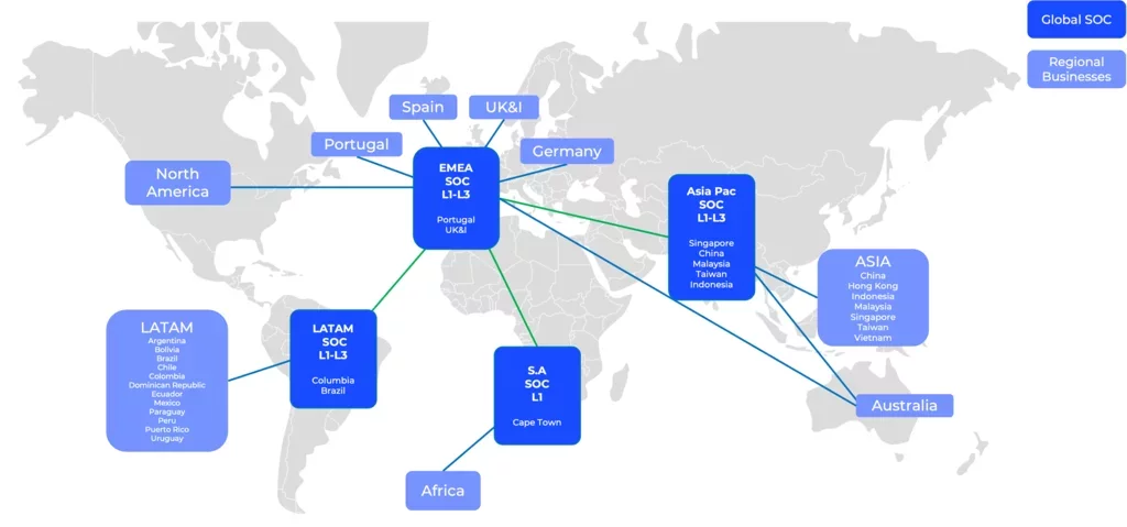 Simplify your security posture by working with one SOC provider and one managed contract covering all your local entities. No need to manage multiple contracts.